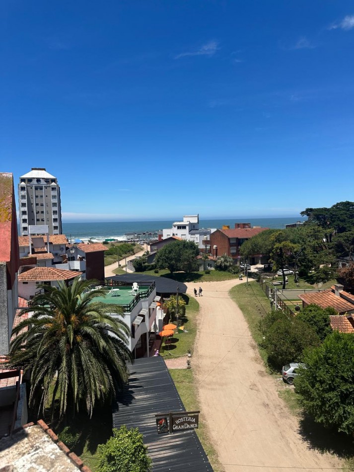 Departamento 3 ambientes ubicado en villa gesell sobre paseo 126 y avenida 1 en el edificio rosamar en cuarto piso terraza con acceso por escalera ofreciendo una vista abierta e inmejorable al mar y a la ciudad cuenta con 56,16 metros cuadrados cubiertos y 43,50 metros cuadrados descubiertos totalizando 99,66 metros cuadrados según plano dispone de dos dormitorios un toilette un baño principal cocina living comedor amplio vestidor y un balcón aterrazado actualmente se encuentra dividido en dos unidades funcionales tipo monoambiente cuenta con gas envasado la zona es altamente valorada por su proximidad inmediata al mar y la playa con entorno tranquilo y excelente accesibilidad ideal tanto para uso propio como para inversión inmobiliaria