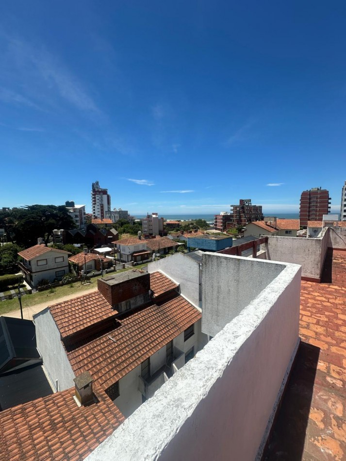 Departamento 3 ambientes ubicado en villa gesell sobre paseo 126 y avenida 1 en el edificio rosamar en cuarto piso terraza con acceso por escalera ofreciendo una vista abierta e inmejorable al mar y a la ciudad cuenta con 56,16 metros cuadrados cubiertos y 43,50 metros cuadrados descubiertos totalizando 99,66 metros cuadrados según plano dispone de dos dormitorios un toilette un baño principal cocina living comedor amplio vestidor y un balcón aterrazado actualmente se encuentra dividido en dos unidades funcionales tipo monoambiente cuenta con gas envasado la zona es altamente valorada por su proximidad inmediata al mar y la playa con entorno tranquilo y excelente accesibilidad ideal tanto para uso propio como para inversión inmobiliaria